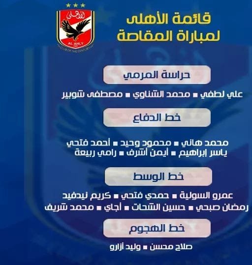 تعرف على قائمة الاهلى امام مصر المقاصه