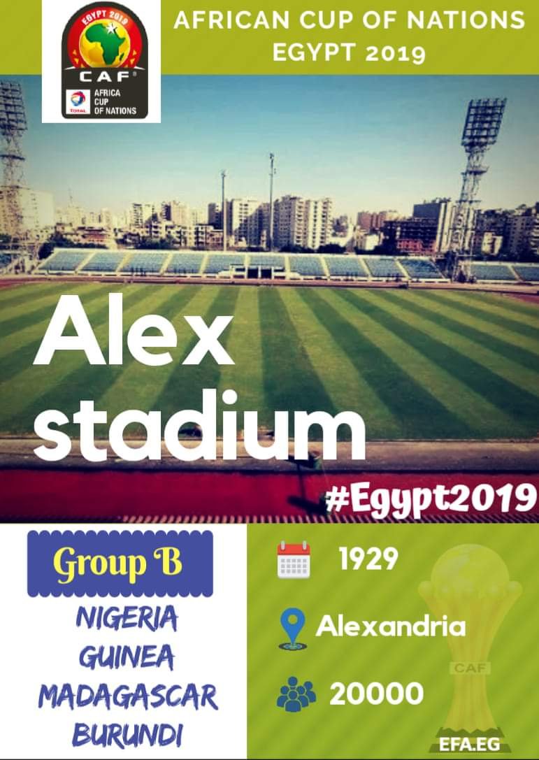 استاد الإسكندرية أقدم الملاعب بالقارة السمراء يرحب بمنتخبات المجموعة الثانية نيجيريا وغينيا ومدغشقر وبوروندي وجاهز لاستضافة مبارياتهم بالبطولة.